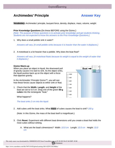 Read Online Explore Learning Archimedes Principle Answers Epub