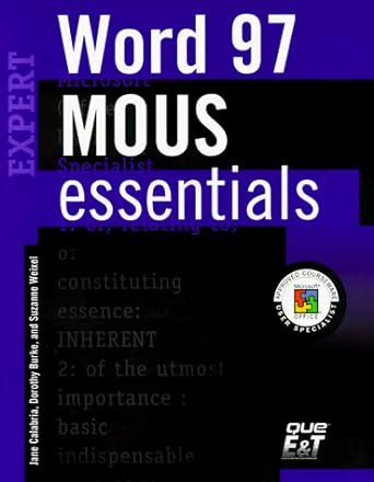 Download Mous Essentials Word 97 Expert Reader By Click Button. Mous Essentials Word 97 Expert it’s easy to recommend a new book category such as Novel, journal, comic, magazin, ect. You see it and you just know that the designer is also an author and understands the challenges involved with having a good book. You can easy klick for detailing book and you can read it online, even you can download it